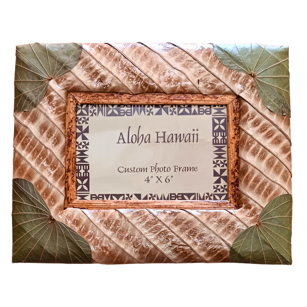 Aloha Hawaii Natural Leaf & Bamboo Photo Frame – Handmade Island Décor