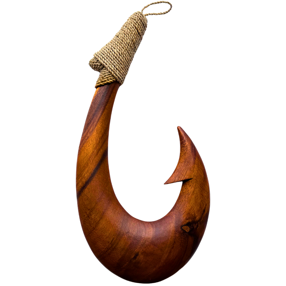 Hand-Carved 6" Wooden Hawaiian Fish Hook Pendant – Symbol of Strength and Protection