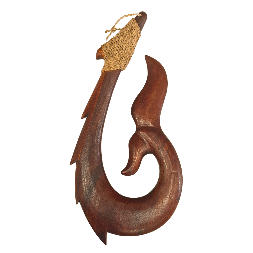 Hawaiian Suar Wood Fish Hook with Whale Tail – Handcarved Wall Decor