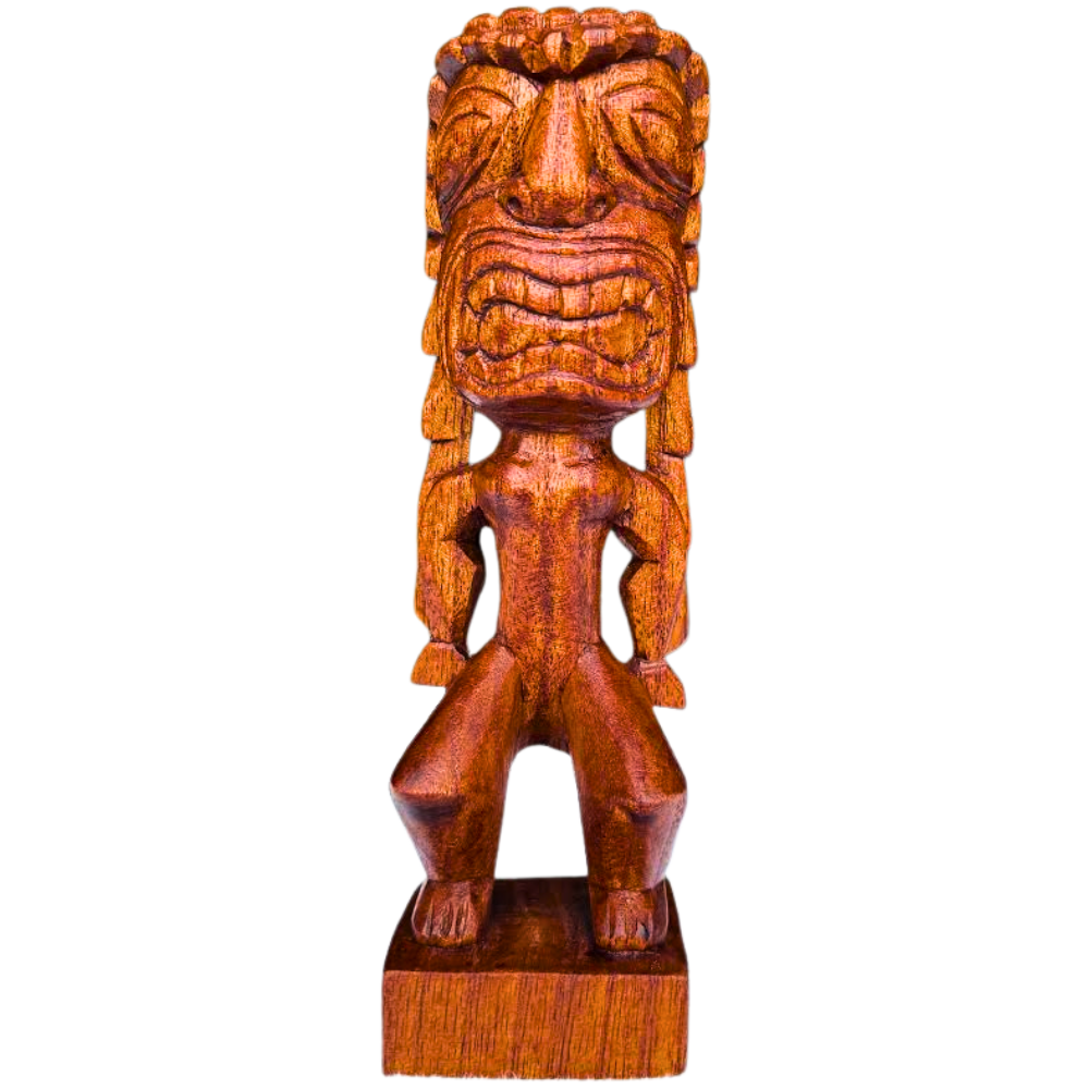 Hand-Carved Hawaiian 8" Tiki Statue – Ku God of War and Strength Wood Carving TK-20C KU)