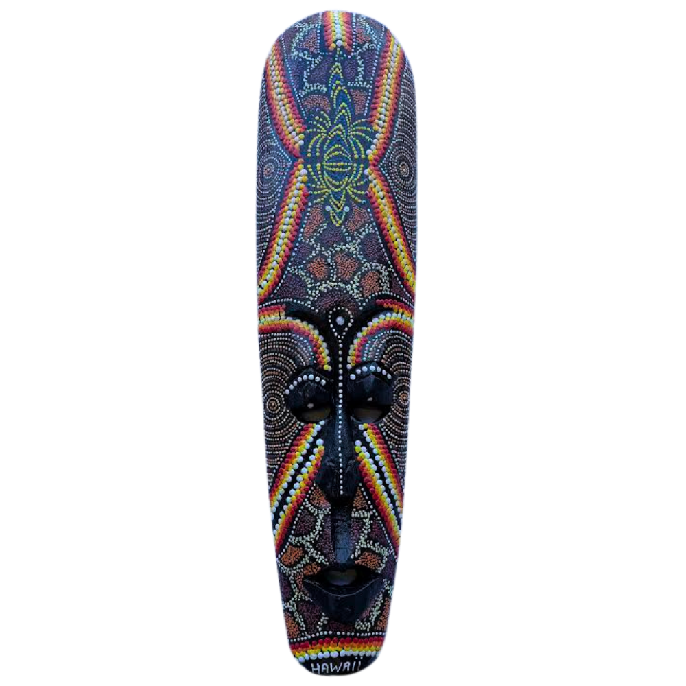 Hand-Painted Hawaiian Dot-Art Tiki Mask with Honu Sea Turtle