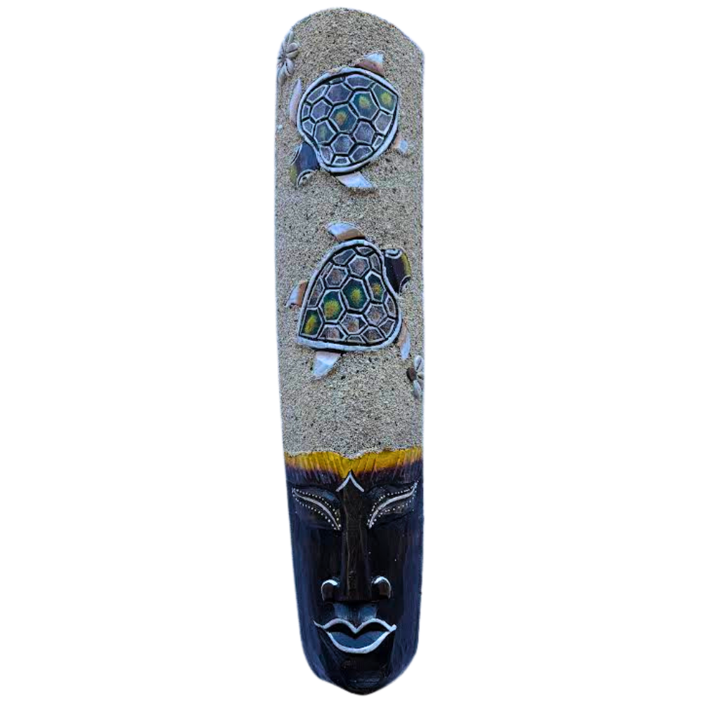 Handmade Hawaiian Sand & Honu Tiki Mask – Double Sea Turtle Wall Art