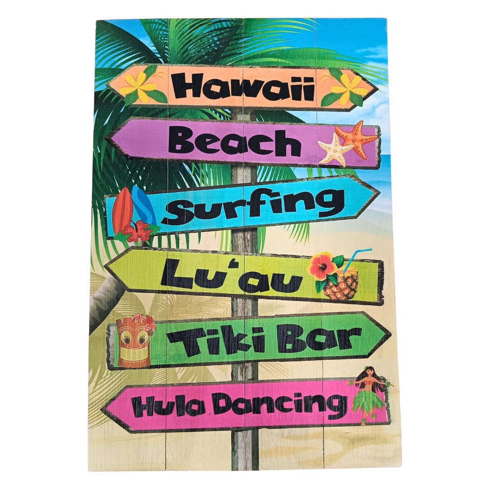 Colorful Hawaiian Beach Sign – Lu’au, Tiki Bar & Hula Dancing Wall Décor