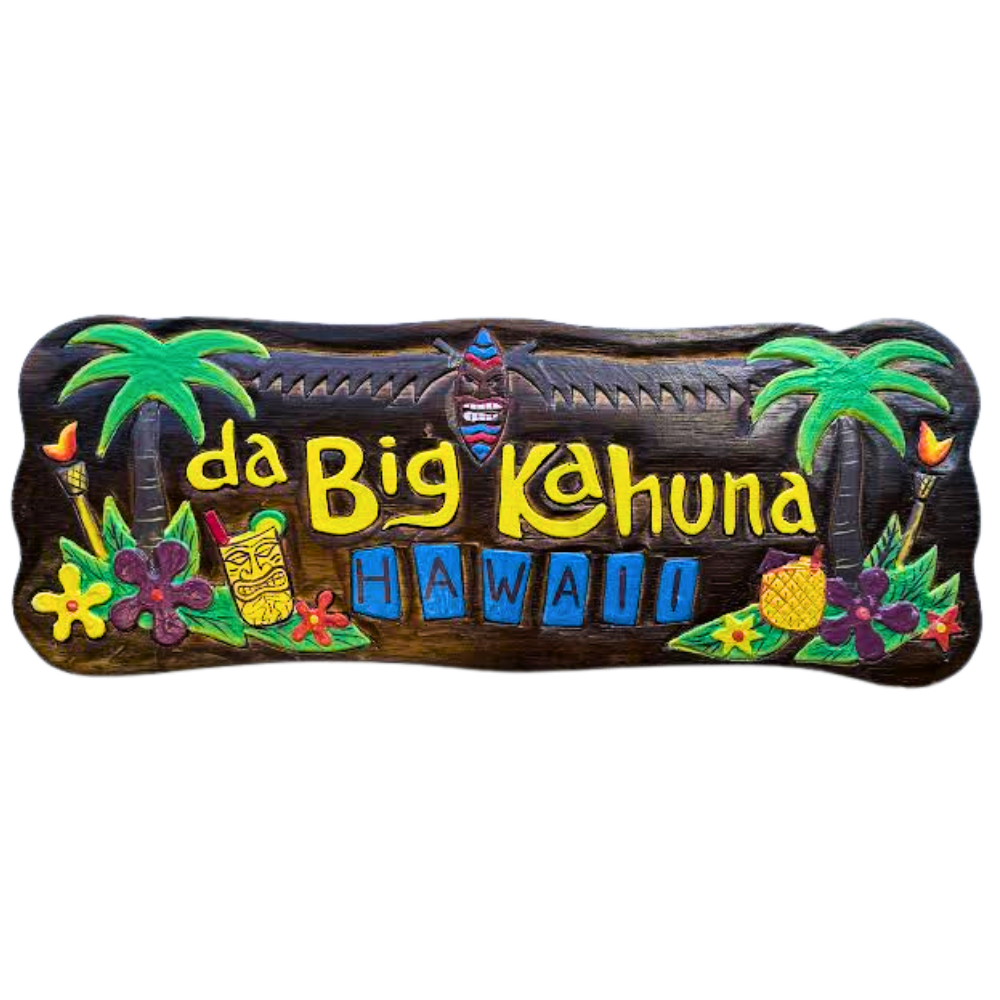Da Big Kahuna Hawaii Hand-Carved Wooden Sign – Tropical Tiki Bar Wall Decor (WP-418)