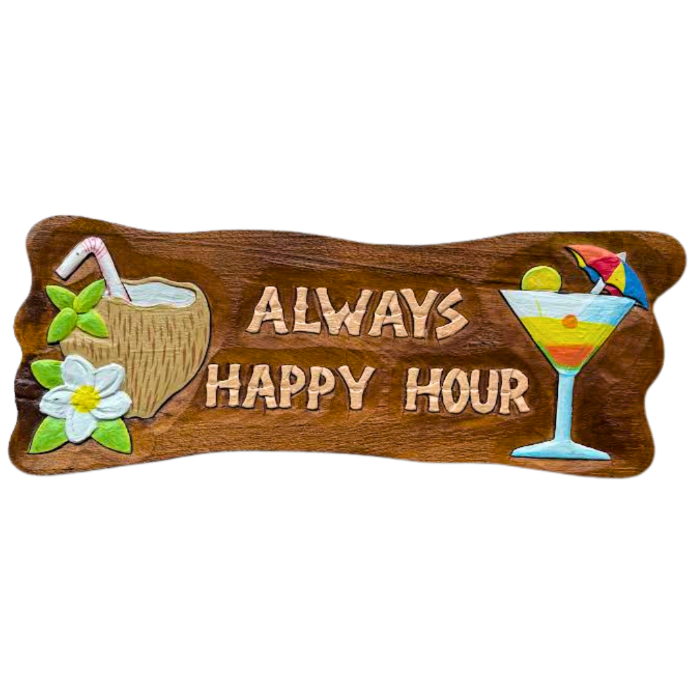 Hand-Painted “Always Happy Hour” Wood Cocktail Sign (WP-346)