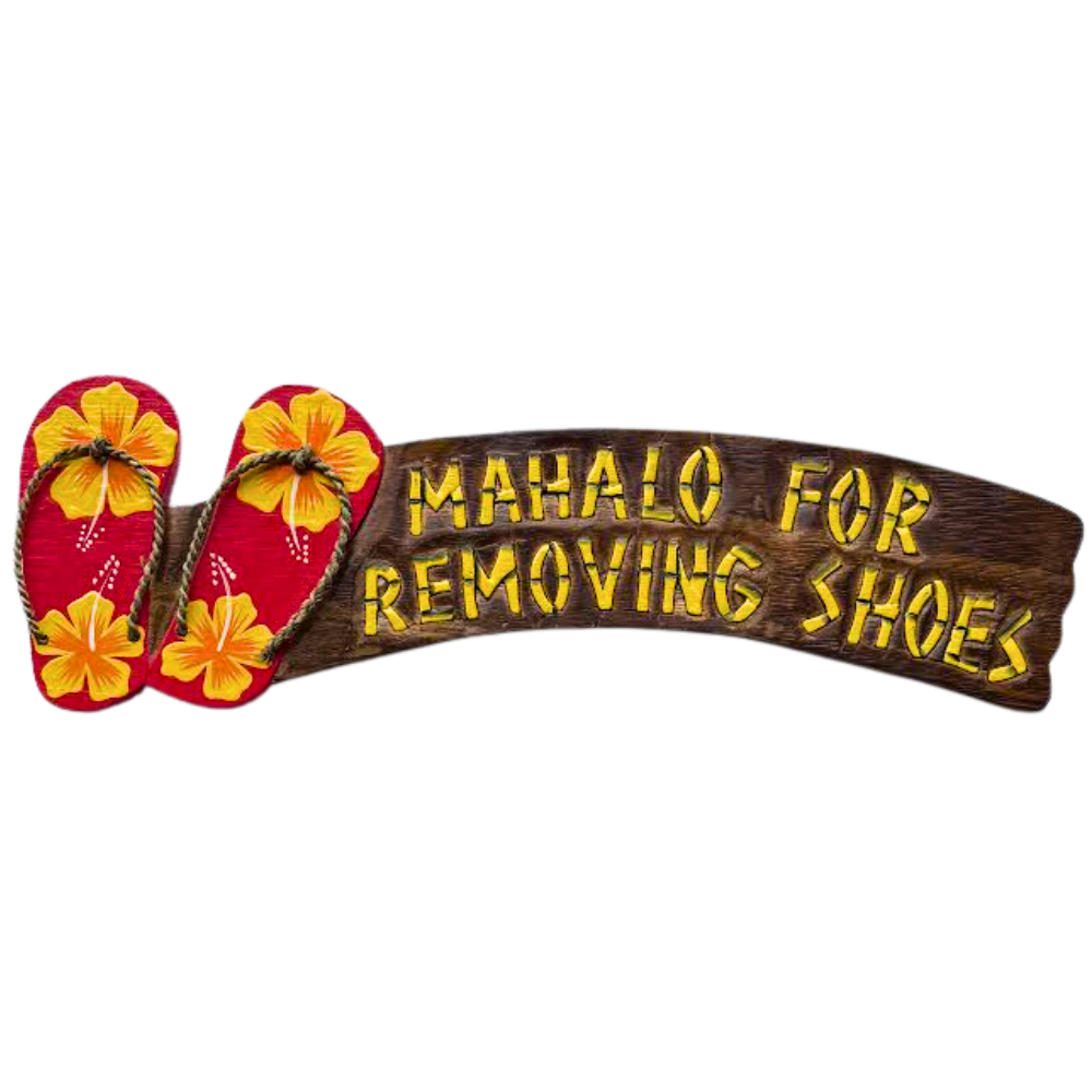 Hand-Painted “Mahalo For Removing Shoes” Flip-Flop Wood Sign (WP-36)