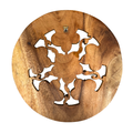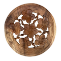 Hand-carved round plaque featuring plumeria blossoms