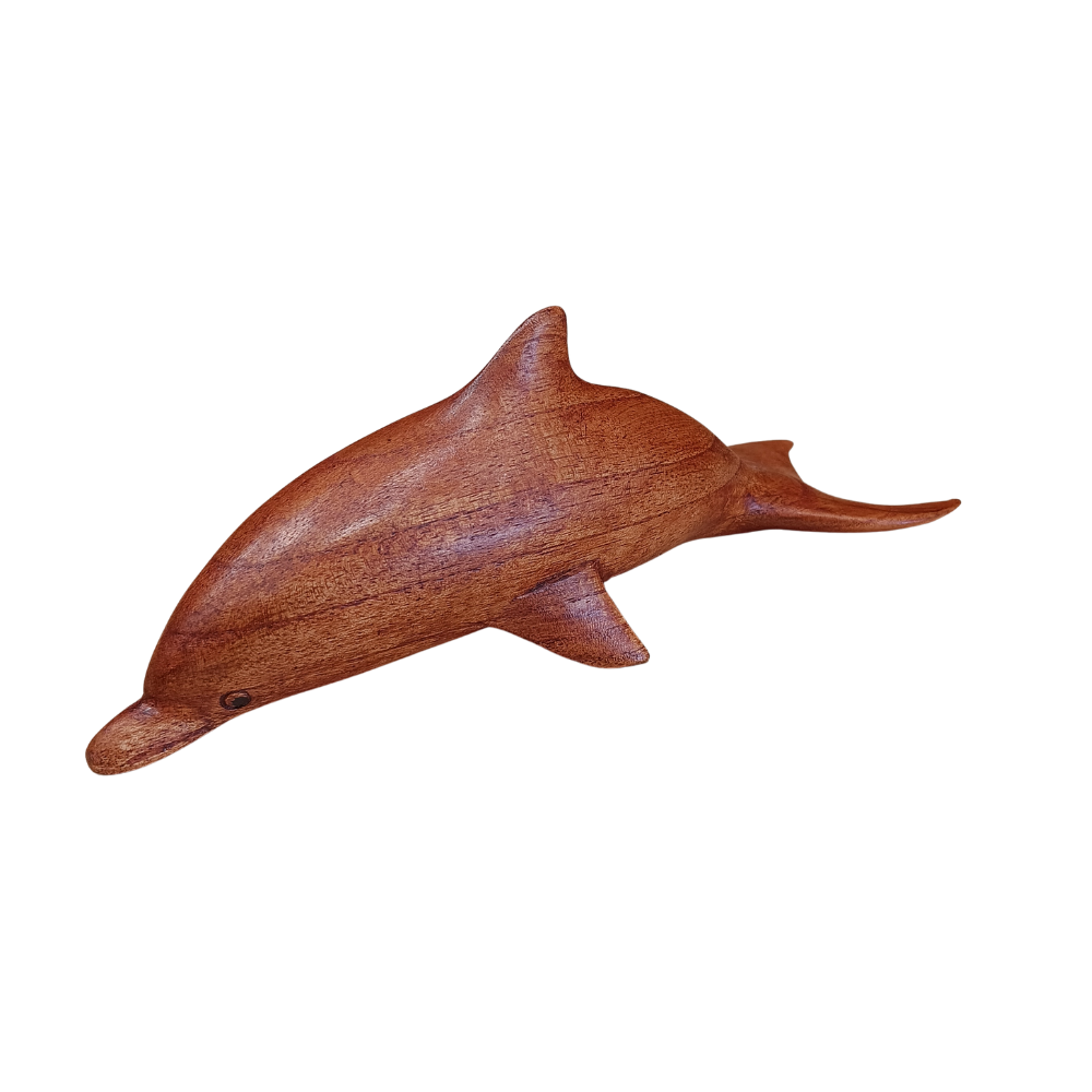 Hand-carved 12" dolphin figurine inspired by Hawaiian marine life
