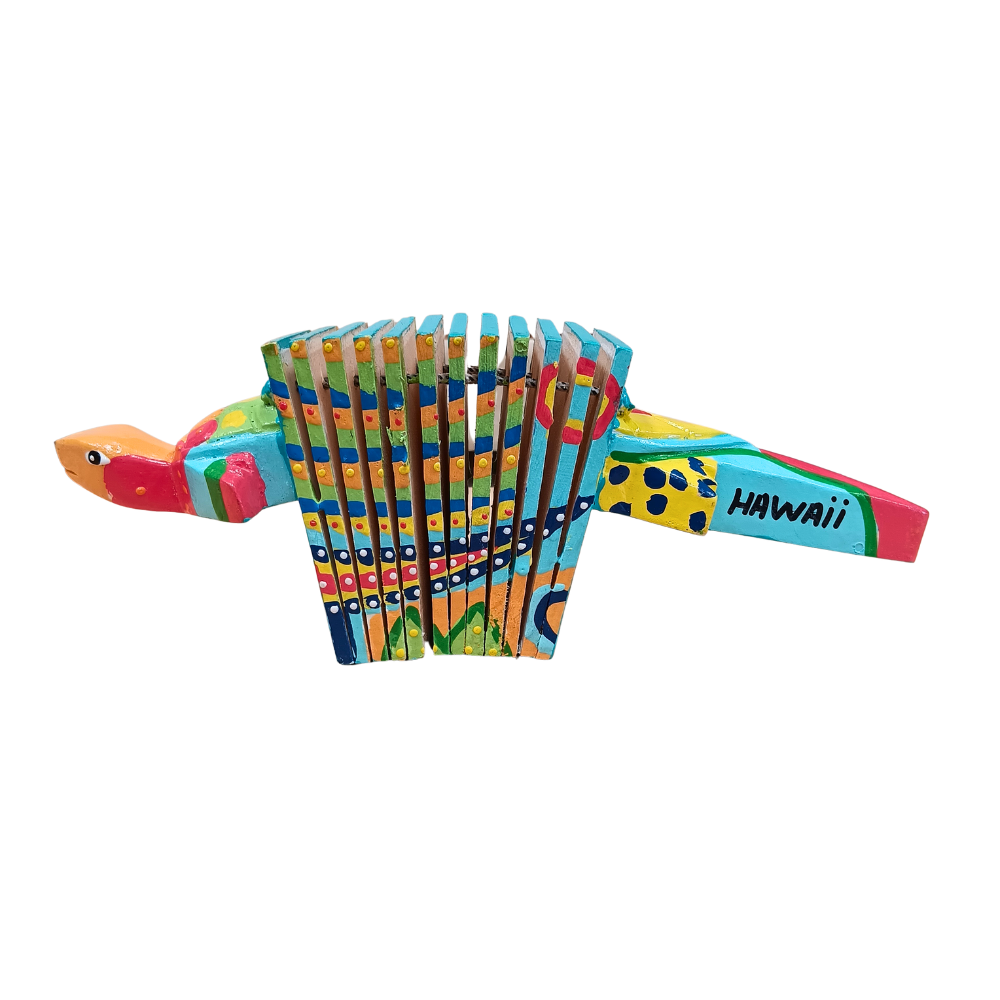 Make music island-style with our Hand-Carved Hawaiian Turtle Clacker Instrument. This fun and functional percussion piece is hand-carved from natural wood and painted in bright, tropical colors. Shaped like a sea turtle, it produces a satisfying clacking sound when shaken, making it perfect for children, musicians, or as a lively décor piece.