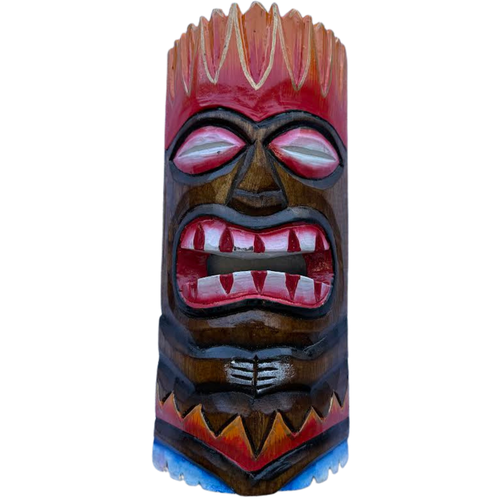 Crafted from natural wood and hand-painted in deep browns, reds, and bright accents, this mask brings an unmistakable Hawaiian vibe to tiki bars, patios, living rooms, office walls, and tropical-themed spaces.