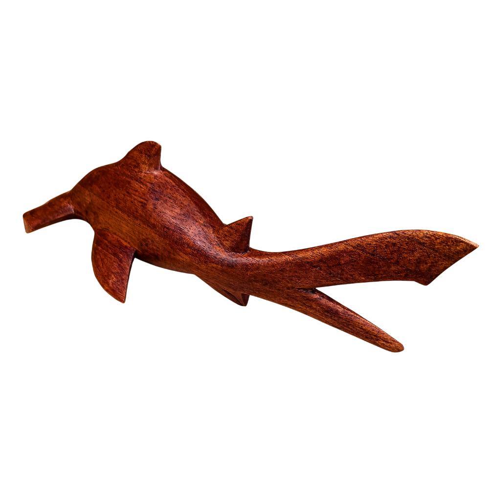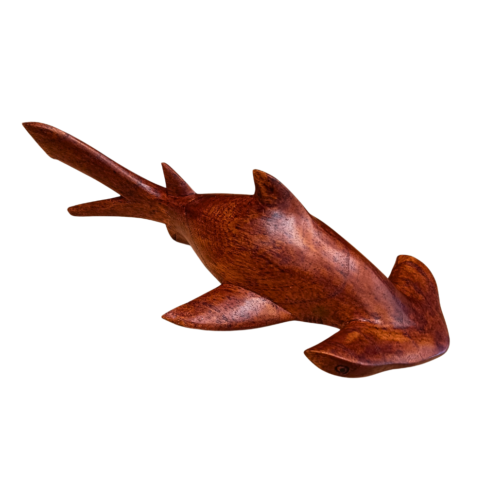 Capture the power and mystery of the Hawaiian seas with this hand-carved wooden hammerhead shark figurine. Expertly crafted by artisans, each piece highlights the sleek, distinctive hammerhead design and the natural beauty of the wood. Whether displayed on a shelf, desk, or as part of a coastal collection, this carving brings the spirit of the ocean into your home.