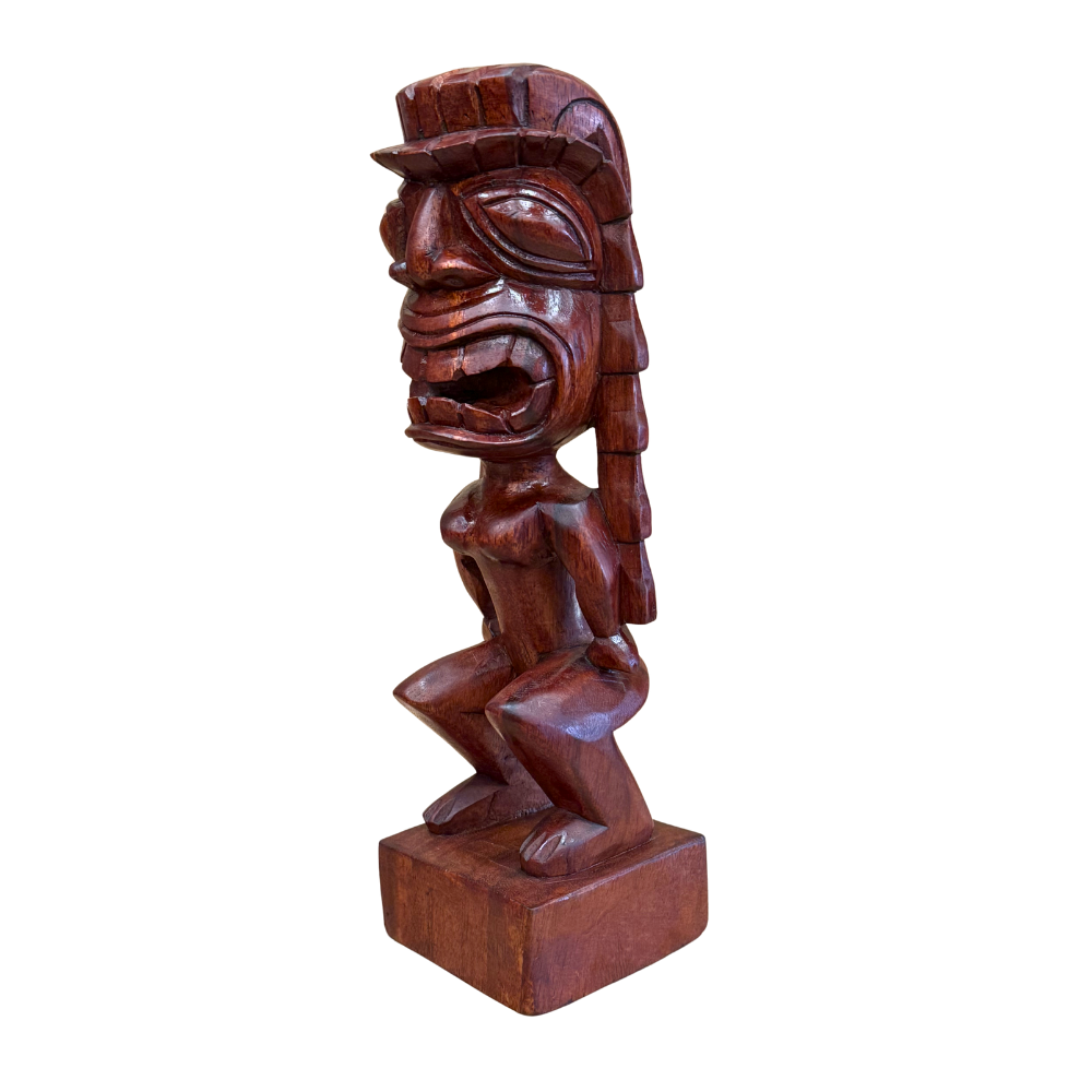 This premium 12-inch Kanaloa tiki statue represents Kanaloa, one of Hawai‘i’s four major gods and the deity of the ocean, healing, navigation, and spiritual depth. Hand-carved from dense, high-quality hardwood, this limited-quantity piece features bold facial lines, deep carving, and a strong traditional stance.