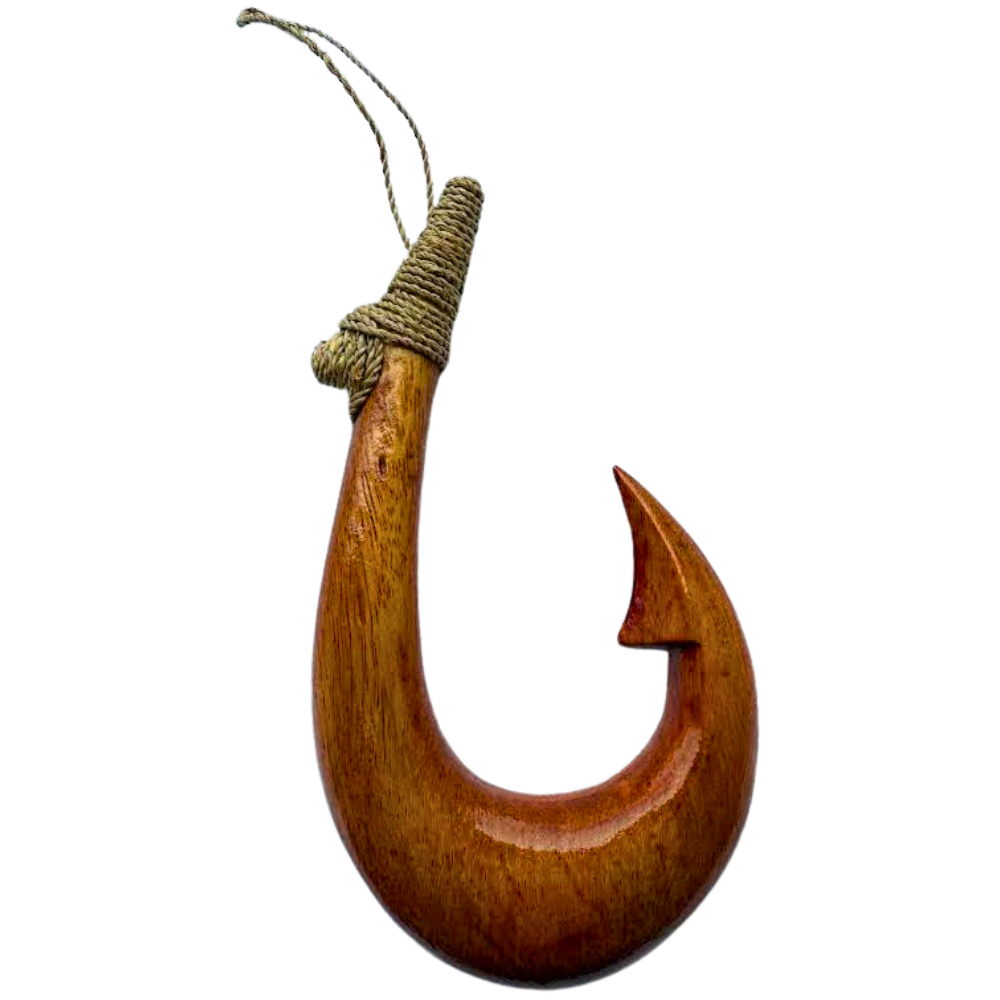 Hand-Carved 6" Wooden Hawaiian Fish Hook Pendant – Symbol of Strength and Protection