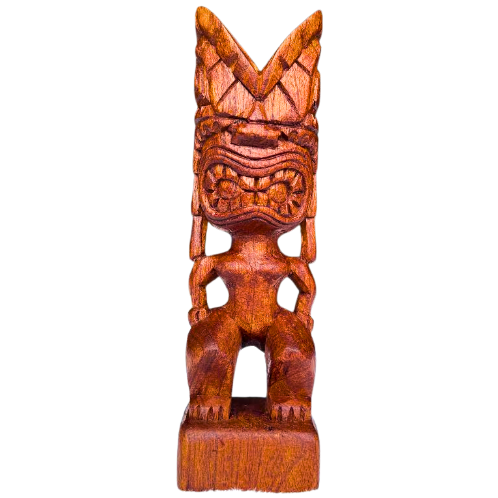 Hand-Carved Hawaiian 8" Tiki Statue – Ku God of War and Strength Wood Carving TK-20C KU)