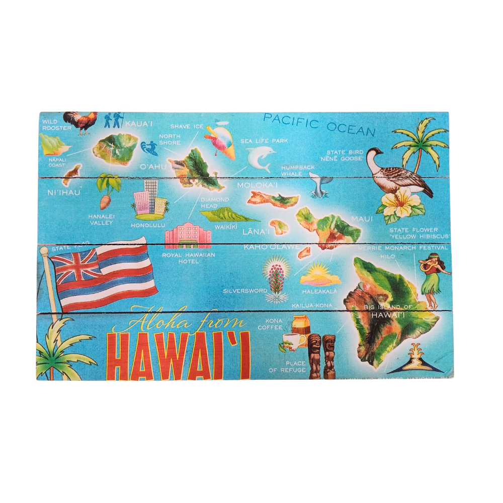 Vintage-Style "Aloha from Hawai‘i" Wood slats Map Wall Plaque