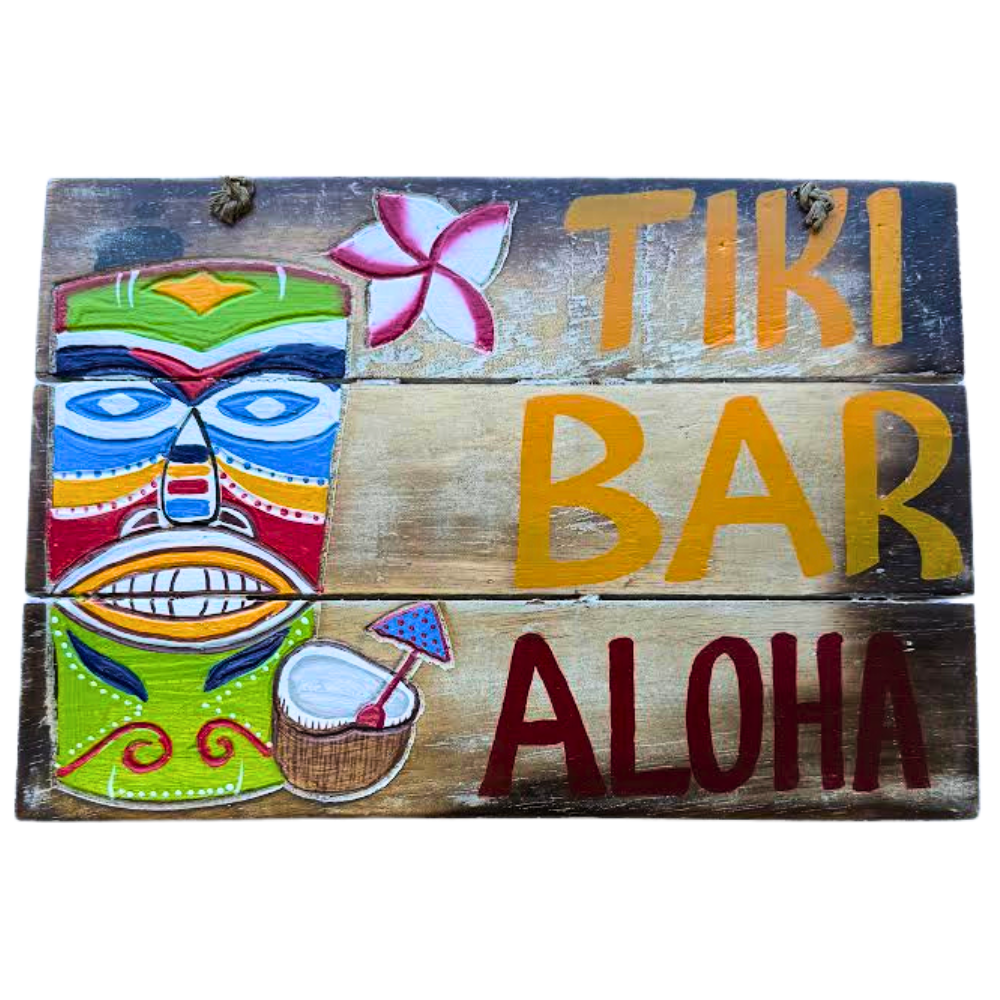 Hand-painted Tiki Bar Aloha wooden sign with bright tropical colors