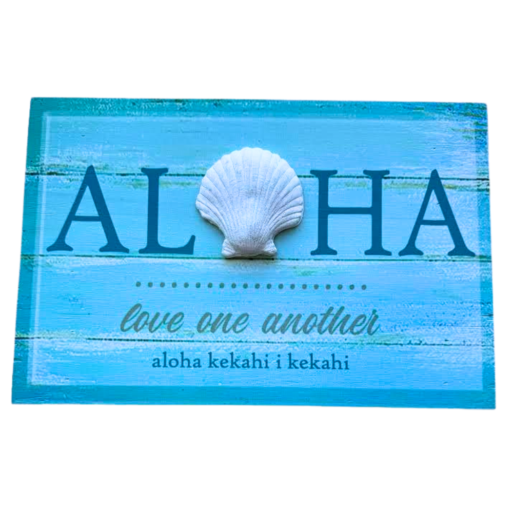 Aloha “Love One Another” Seashell Wall Sign – Coastal Hawaiian Decor